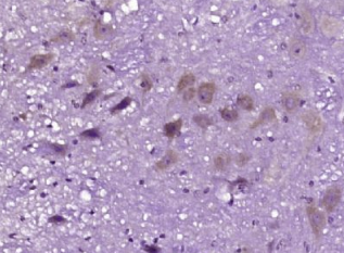 多聚甲醛固定,石蜡包埋(小鼠脑组织);用柠檬酸钠缓冲液(pH6.0)煮沸15min后获得抗原;用3%过氧化氢阻断内源性过氧化物酶20分钟;阻断缓冲液(正常山羊血清)在37℃下30min;用(γ-Advin)多克隆抗体进行抗体孵育。1:400在4°C下过夜,然后根据SP试剂盒(兔子)说明和DAB染色进行操作。