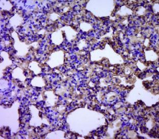 多聚甲醛固定,石蜡包埋(大鼠肺组织);用柠檬酸钠缓冲液(pH6.0)煮沸15min后获得抗原;用3%过氧化氢阻断内源过氧化物酶20分钟;在37℃下封闭缓冲液(正常山羊血清)30min;抗体(水通道蛋白5)多克隆抗体在1:40孵育。0在4°C下过夜,然后用共轭二次进行20分钟的DAB染色。